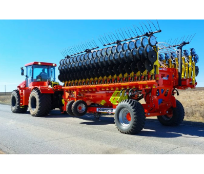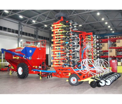 Еще одна новинка 2023 года – это механический дисковый посевной комплекс «Agrator Disk – 6000М» шириной захвата 6 метров. Особенностью этого комплекса является адаптация к передвижению по дорогам общего пользования. Ширина агрегата в транспортном положении  2,8 метров, высота – 2,6 м, длина – 8,9 м.