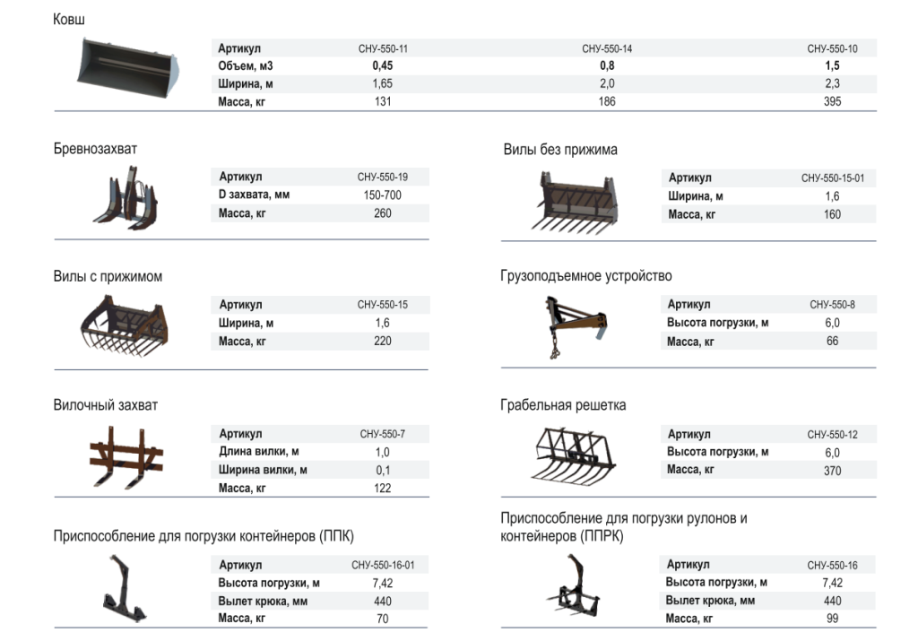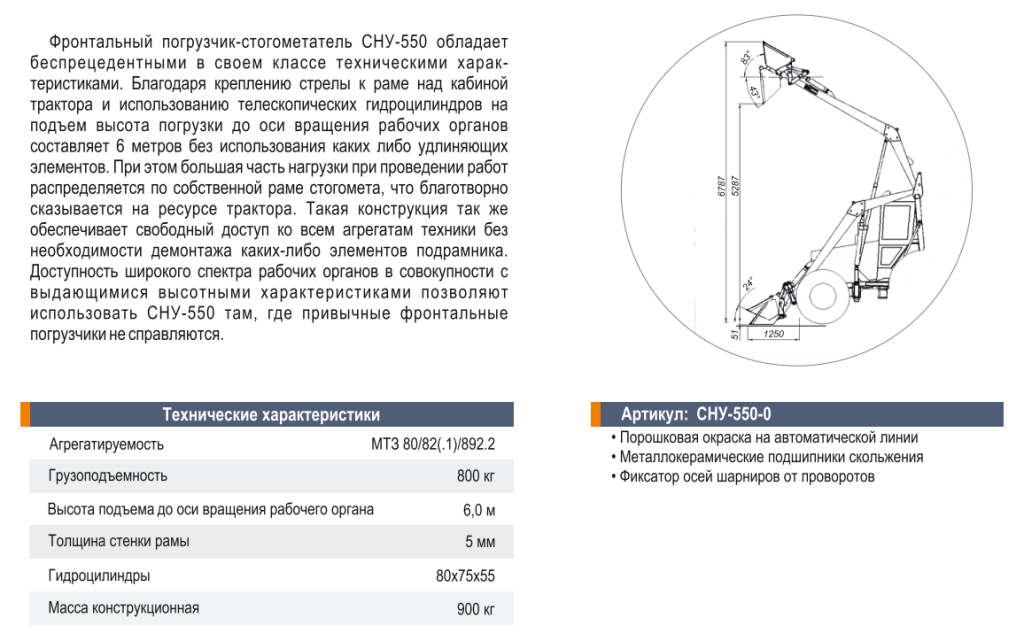 Рабочие органы для Фронтальный погрузчик-стогометатель СНУ-550