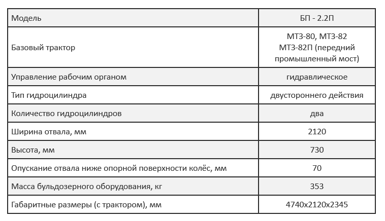 БУЛЬДОЗЕРНОЕ ОБОРУДОВАНИЕ БП-2.2П