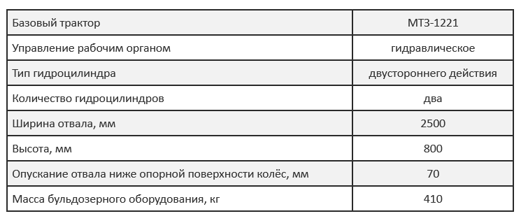 Технические характеристики отвала на МТЗ-1221: