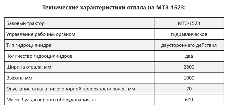 Технические характеристики отвала на МТЗ-1523: