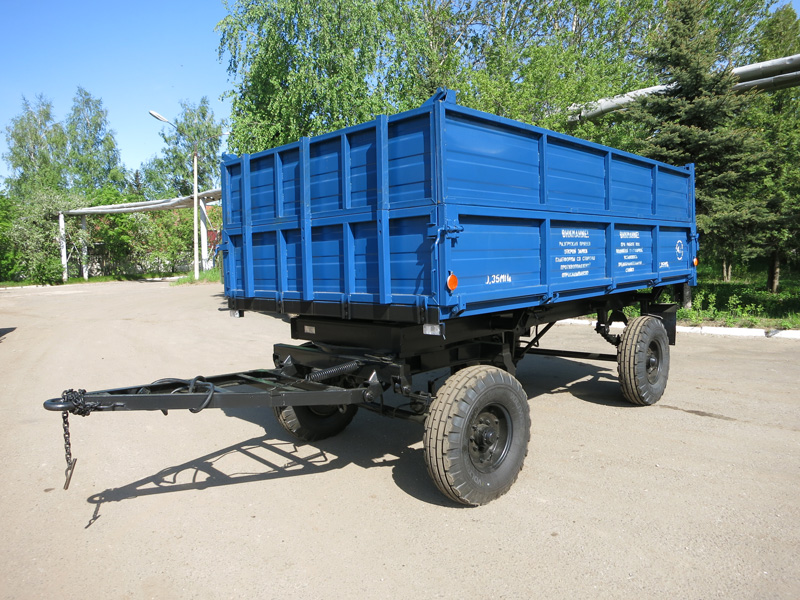 Назначение: прицеп тракторный самосвальный 2 ПТС-4,5 предназначен для перевозки различных сельскохозяйственных и сыпучих строительных грузов по дорогам общей сети и в полевых условиях.