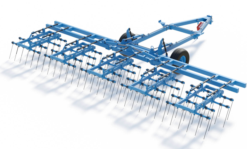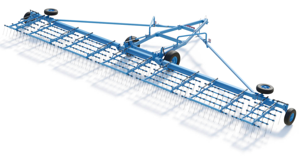 Борона с пружинным зубом полуприцепная гидрофицированная тяжелая ПОБЕДА БЗГТ-15. Ширина захвата бороны — 15,9 м. Производительность 15-23 гектара в час.