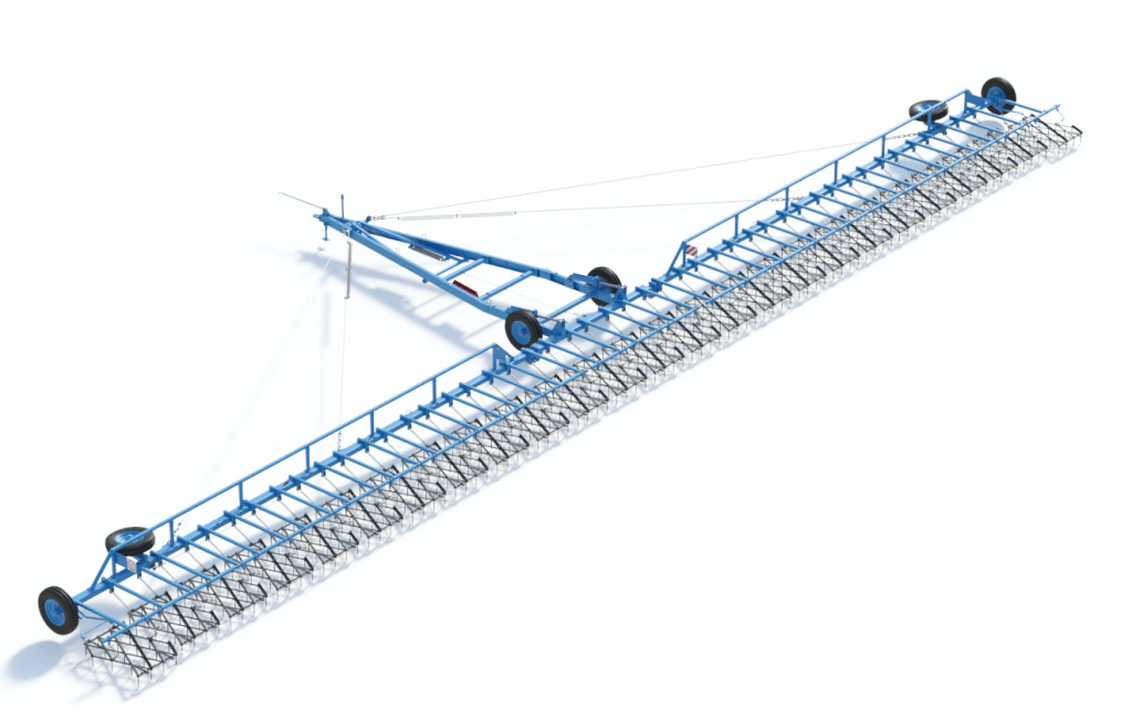 Жесткая, а не тросовая, конструкция растяжек позволяет двигаться задним ходом в рабочем положении и уменьшает радиус разворота на краю поля.