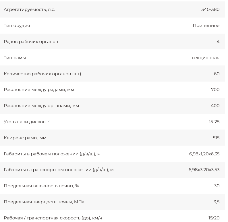 Орудие обеспечивает сплошную обработку по всей ширине захвата.