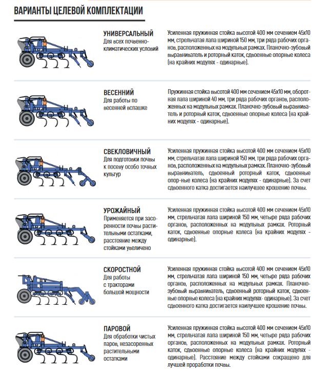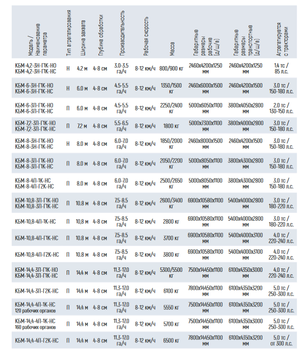 Данная сельхозтехника может агрегатироваться с тракторами различной мощности и класса тяги,  отличается экономичным потреблением горюче-смазочных материалов.