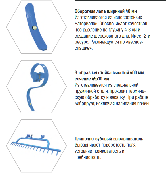 •    комплектуются очень прочными и долговечными культиваторными лапами;