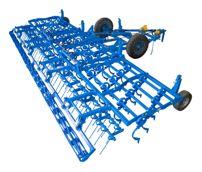 •    Высокая пружинная стойка. На всех 4-х рядах имеется усиленная пружинная стойка, которая в интеграции со стрельчатой лапой обеспечивает стабильное и качественное рыхление почвы на глубину 4-12 см и исключают забивание рабочей части остатками срезаемых растений.
