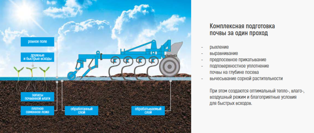 Применение представленной техники позволяет качественно уплотнять почвенный слой на посевной глубине. Она эффективно выравнивает всю поверхность поля, формируя благоприятные условия для ускорения всходов, развития корневой системы растений и кущения. Культивирование почв «Ярославичем» способствует установлению оптимального термо-водо-аэрационного режима, позволяет завершить весенние полевые работы до 2-х недель раньше обычных сроков.