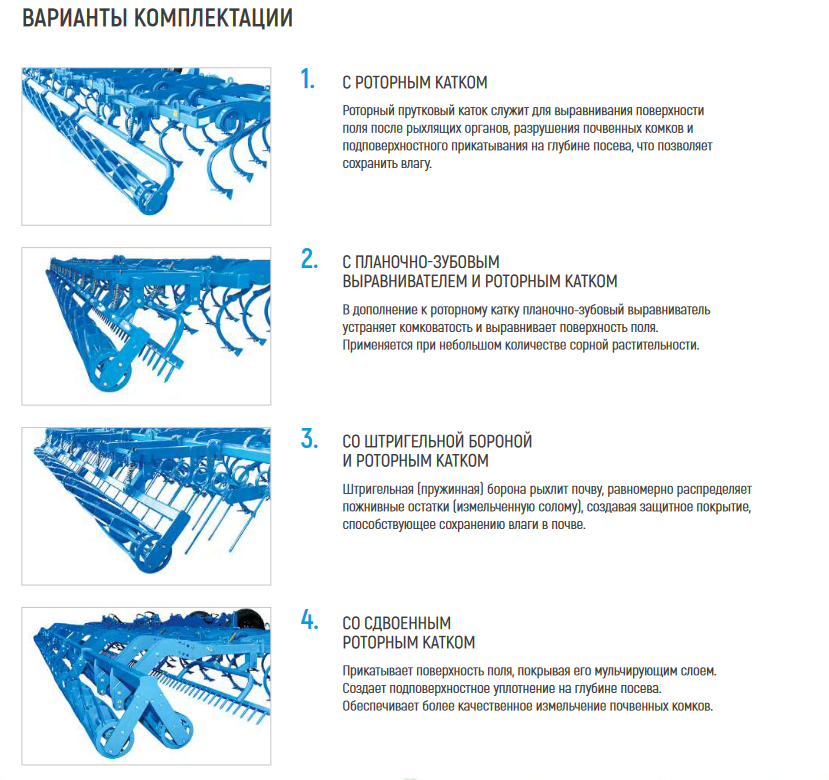 Полуприцепной культиватор доступен в разных вариантах исполнения: