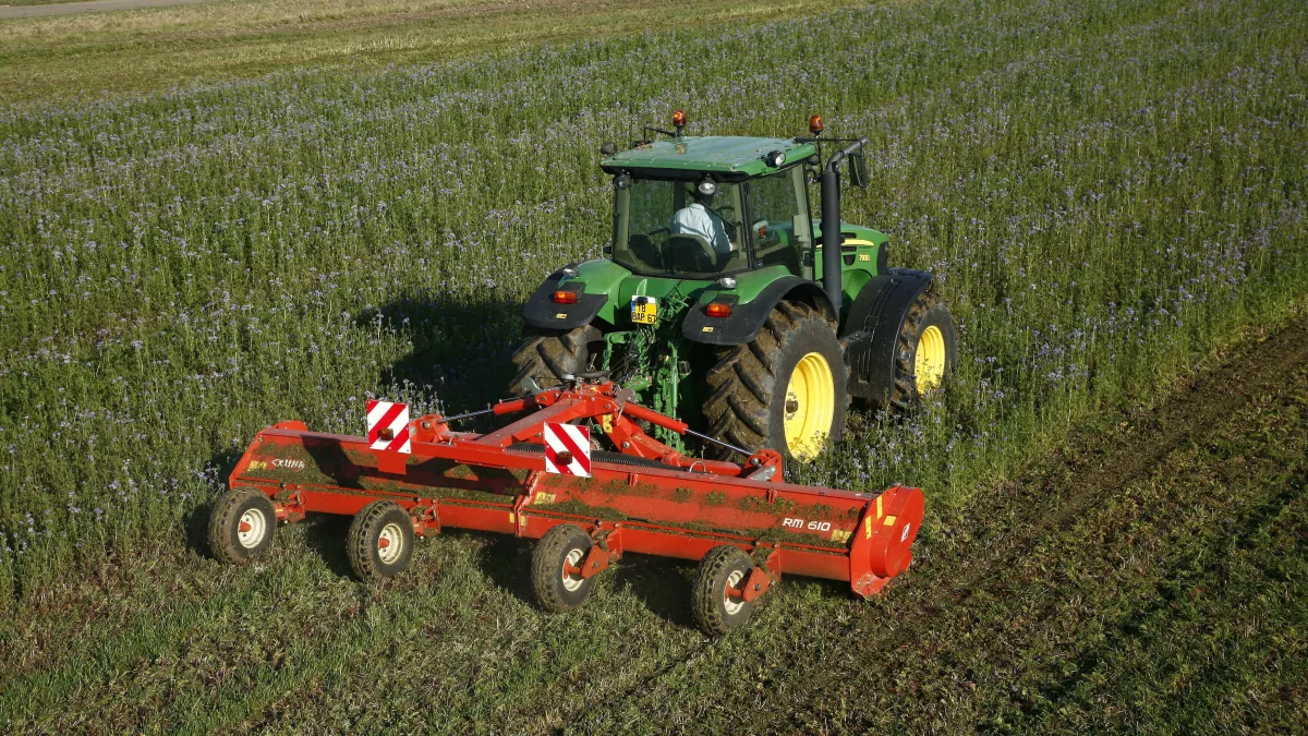 Мульчирователи серии RM с жесткой и складной конструкцией подходят для измельчения растительных остатков, таких как стерня, стебли кукурузы и подсолнечник, а также для содержания пастбищ и травянистых участков. Они, как правило, используются в зерновых хозяйствах, машинных кооперативах, а также в подрядных организациях. При проектировании ротора мы учитывали три важных критерия: большой диаметр, значительное перекрытие между рабочими органами и их высокая линейная скорость. Расположение рабочих органов по спирали улучшает всасывание растительной массы и обеспечивает более эффективную резку и равномерное распределения пожнивных остатков на почве.
